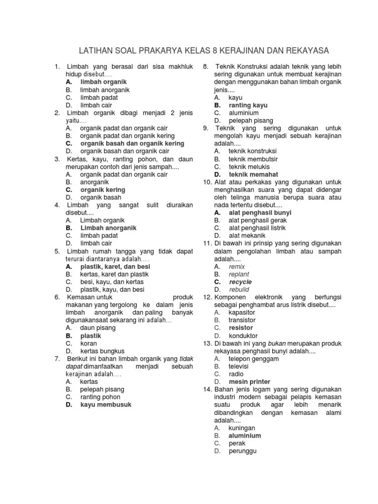 Soal latihan prakarya rekayasa kelas 9 tahun 2015 2016.